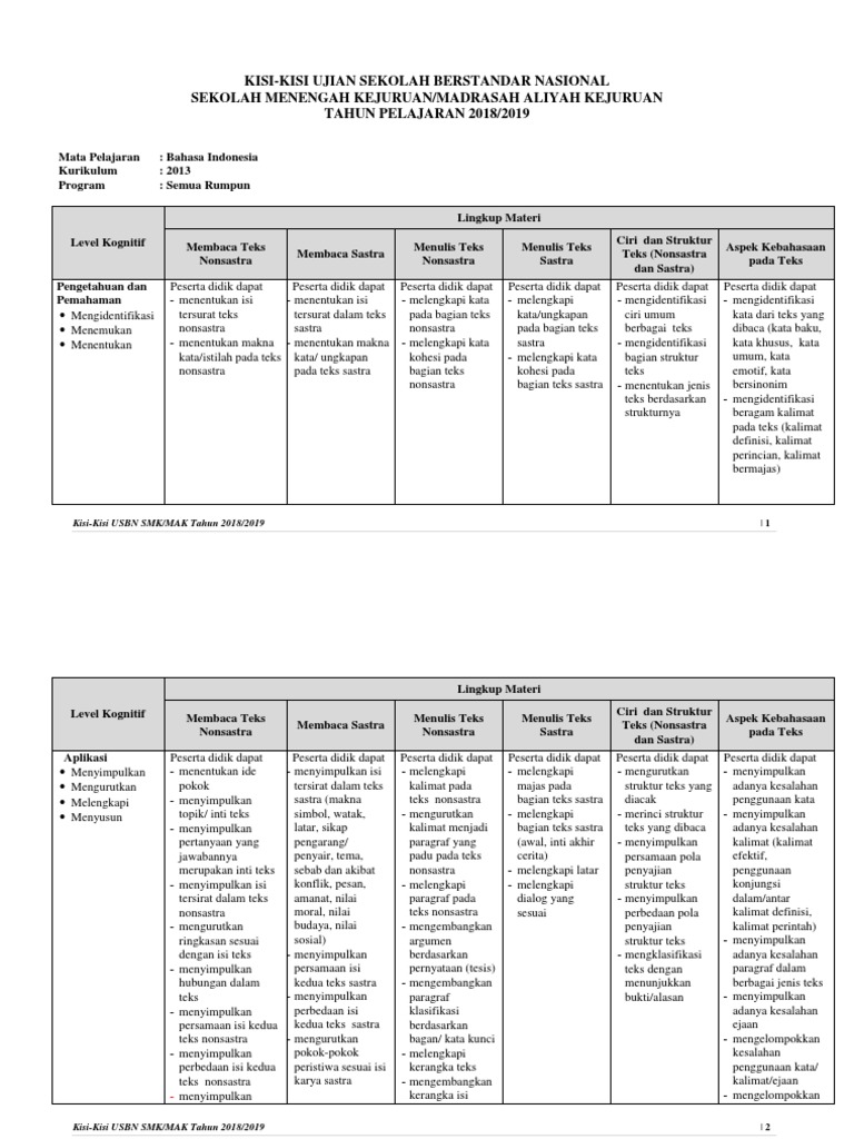 Download Kisi-kisi UN SMP/MTs Tahun 2019 Tahun Pelajaran 2018/2019 …