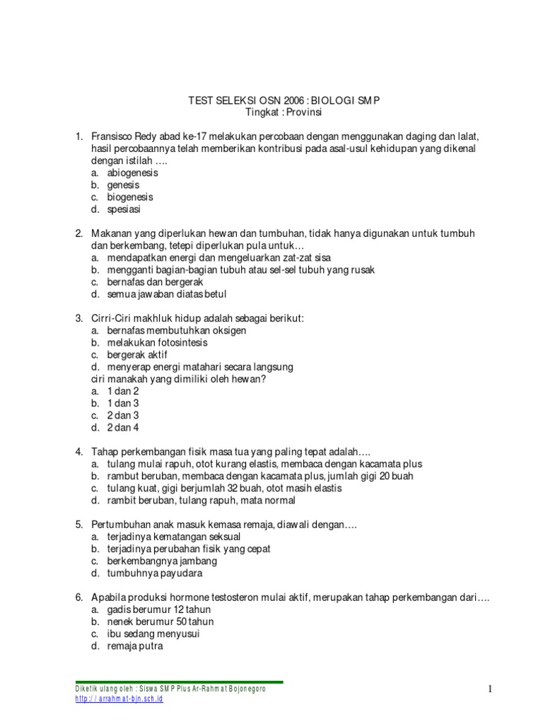 Contoh Soal Osn Biologi Smp Dan Pembahasannya - Dapatkan Contoh