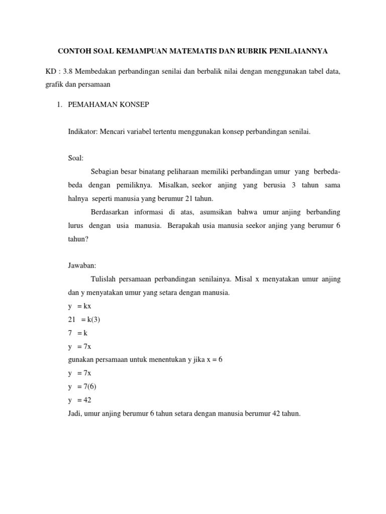Contoh Soal Kemampuan Matematis Dan Rubrik Penilaiannya - Copy