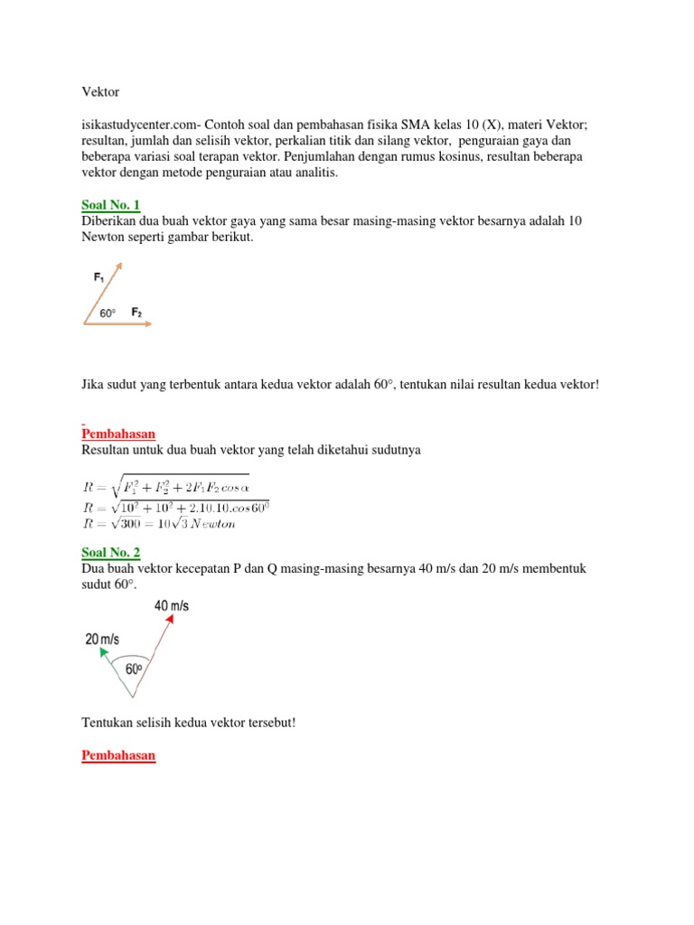 Contoh Soal dan Jawaban Perkalian Dua Buah Vektor.docx - Contoh Soal dan Jawaban Perkalian Dua Buah Vektor OLEH TIM SISWAPEDIA � DIPUBLIKASIKAN � DI | Course Hero