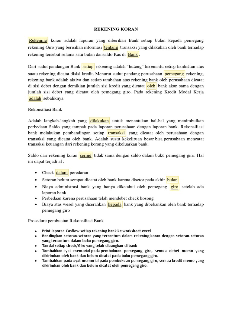 Contoh Soal Dan Jawaban Rekonsiliasi Bank - Guru Paud