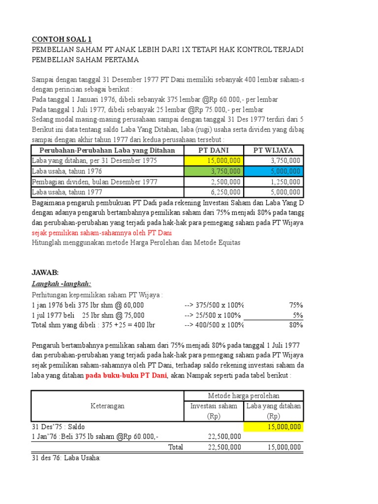 √ Contoh Soal dan Jawaban Pembelian Saham Anak Perusahaan oleh …