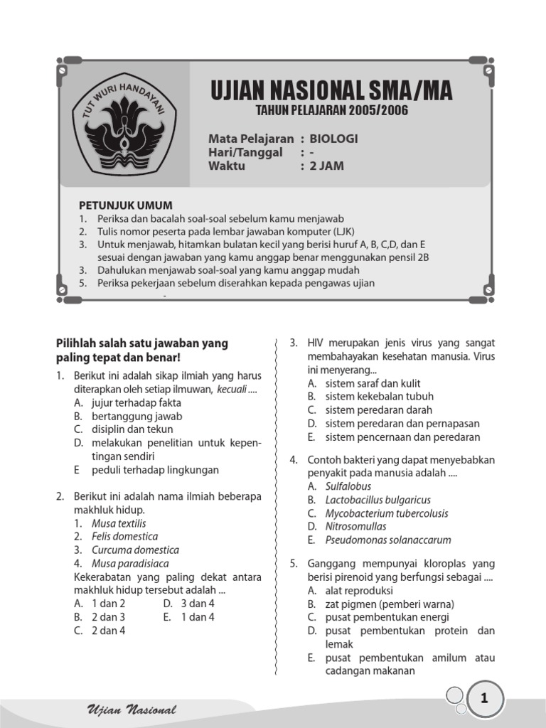 Contoh soal latihan biologi dan jawabannya
