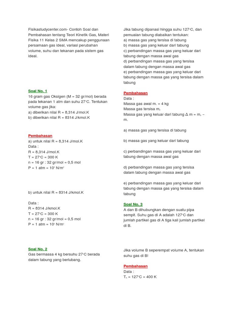 Soal Dan Jawaban Teori Kinetik Gas 20 Butir - [DOC Document]