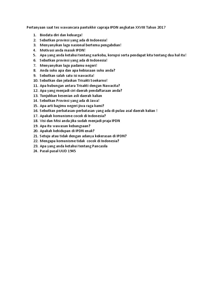 Pertanyaan Saat Tes Wawancara Pantukhir Capraja IPDN Angkatan …