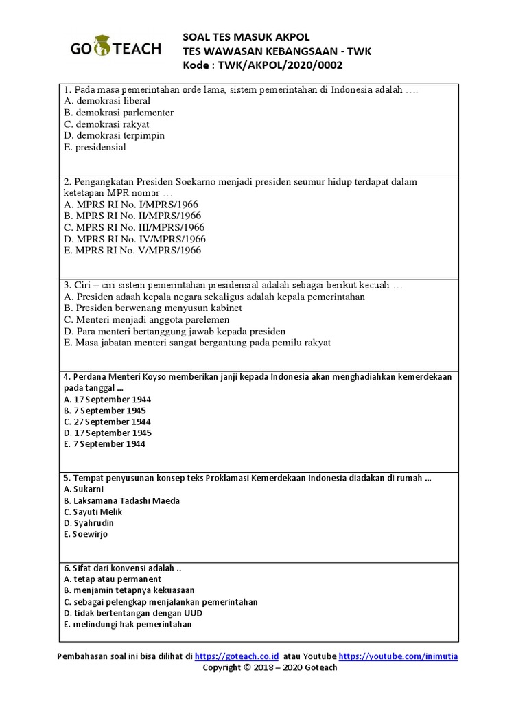 Soal Twk Ipdn Pdf - Guru Paud
