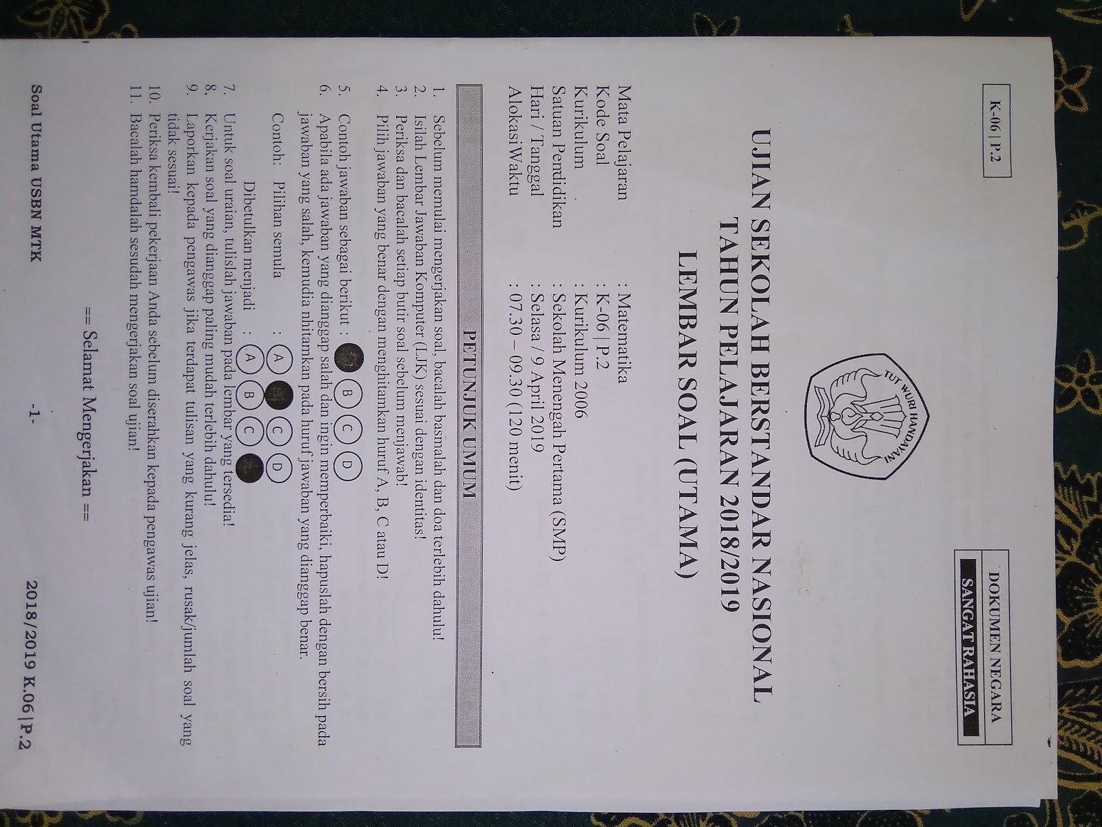 USBN MATEMATIKA SMP 2019