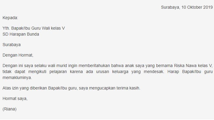 15+ Contoh Surat Izin Tidak Masuk Sekolah Paling Lengkap! - Contoh …