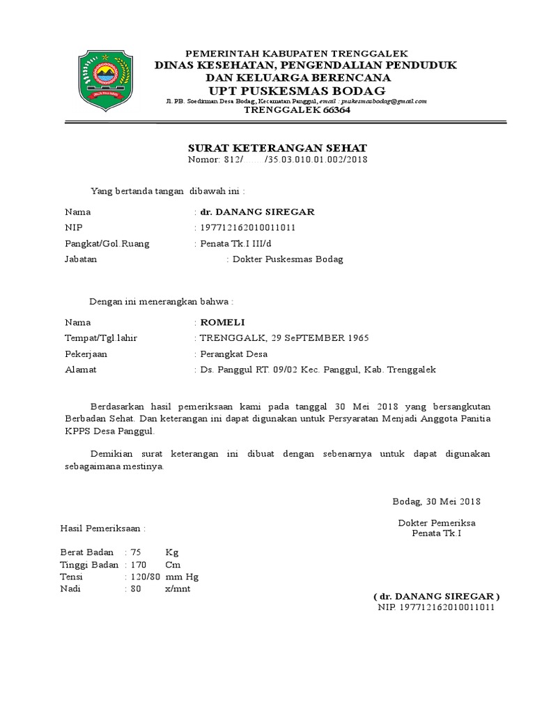 Surat Keterangan Sehat Doc - Cute766