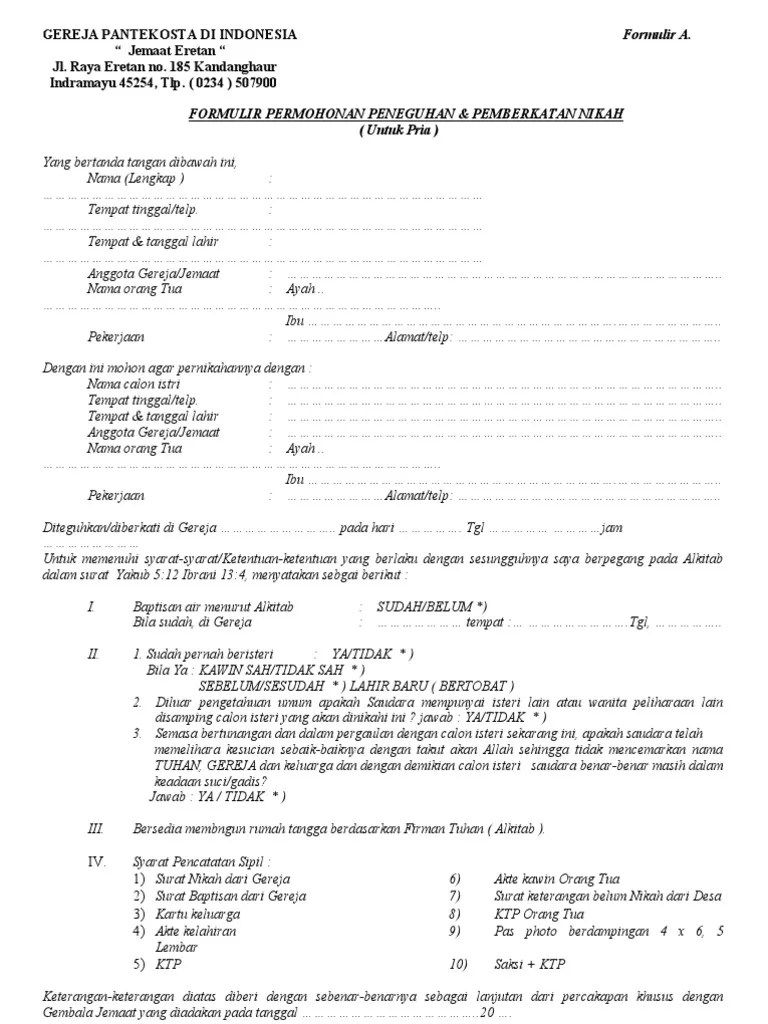 Surat Persetujuan Orang Tua Untuk Menikah Di Gereja