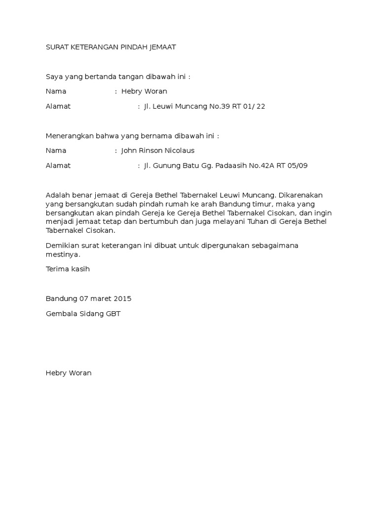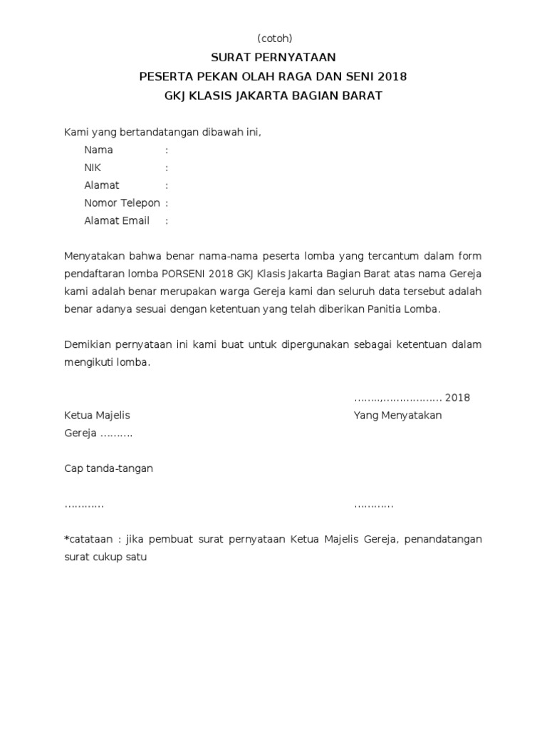 contoh surat pernyataan anggota jemaat gereja - Gawe CV