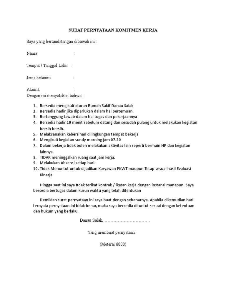 Contoh Surat Pernyataan Komitmen - Gawe CV