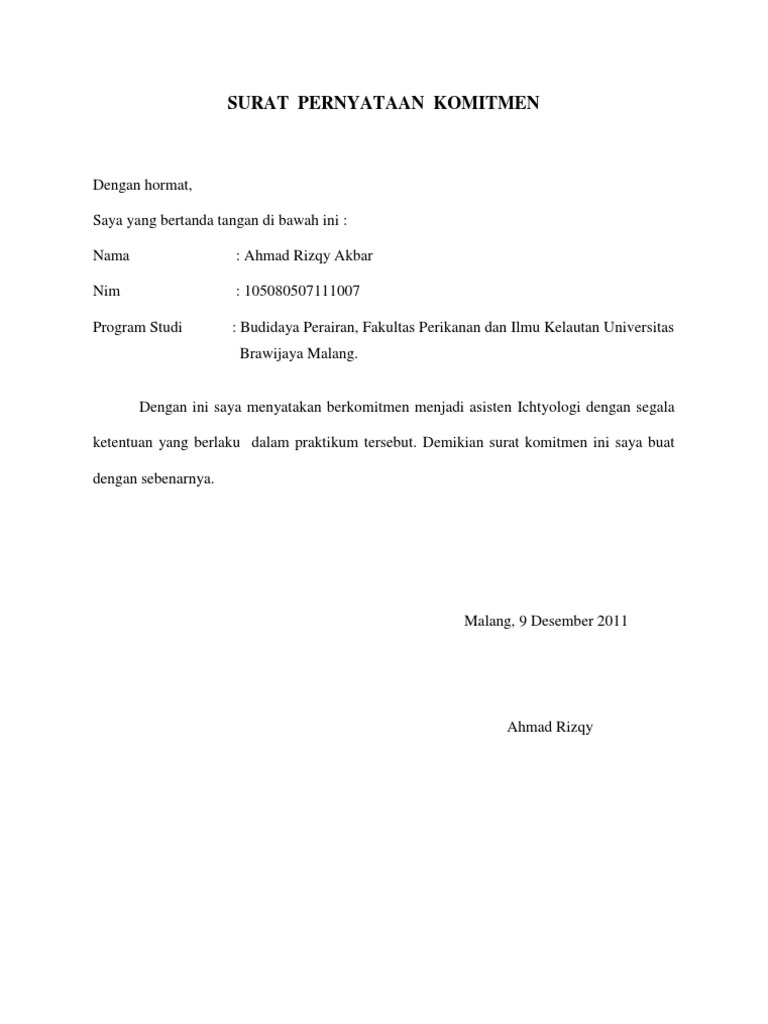 DOC) Surat pernyataan komitmen | Fandhi Nugraha K - Academia.edu