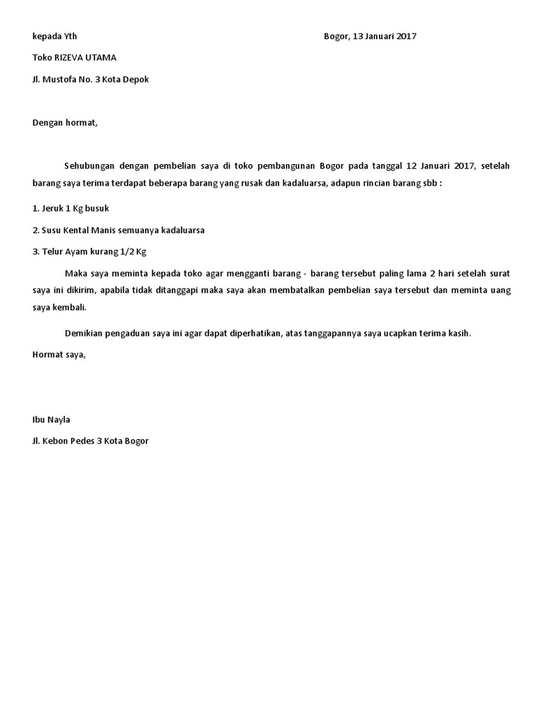 DOC) CONTOH SURAT MASUK KOMPLAIN BARANG | Tika Nafisah - Academia.edu