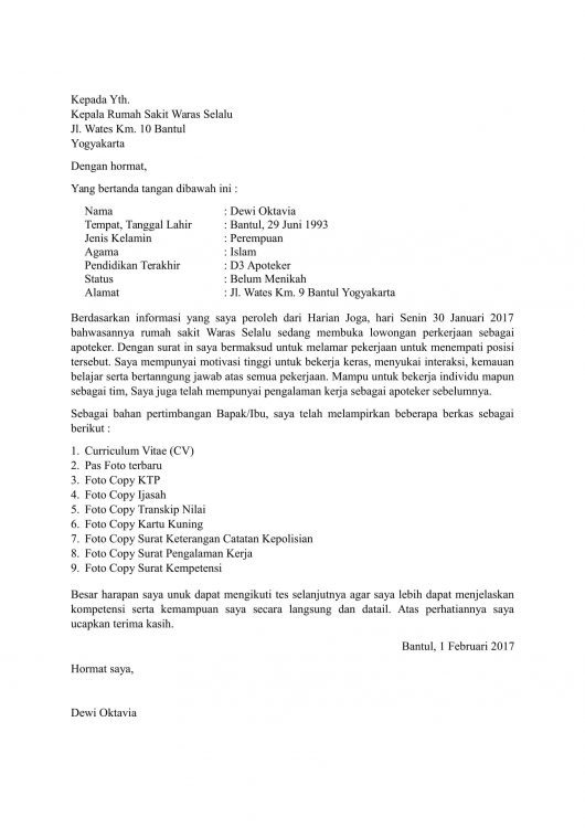 Contoh Surat Lamaran Pekerjaan Bahasa Indonesia Indra Blog - Cute766