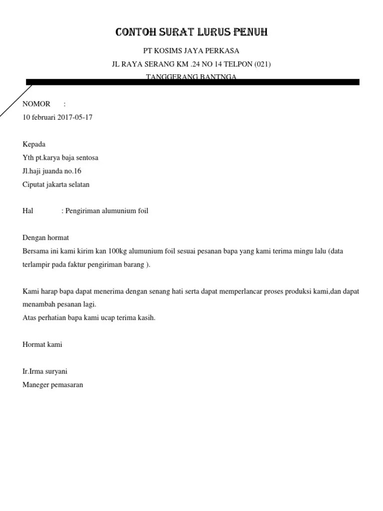 Contoh Surat Bisnis Bentuk Lurus Penuh - Download Kumpulan Gambar