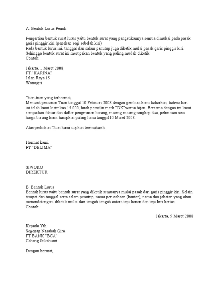 Contoh Bentuk Surat Bentuk Lurus Penuh - Seputar Bentuk