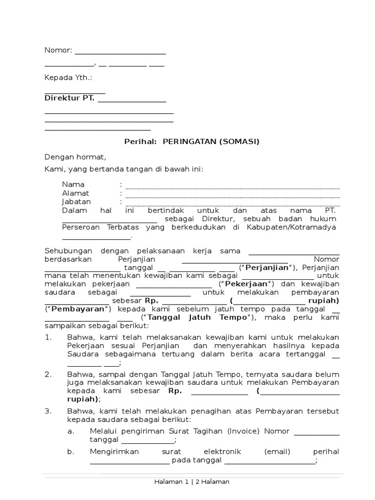 Contoh Surat Somasi Hutang Piutang Perorangan – ID.Lif.co.id