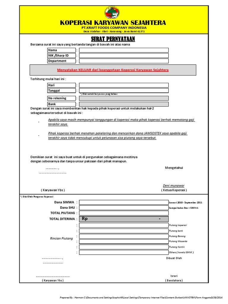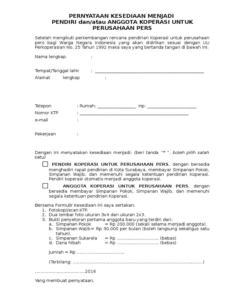 Contoh Surat Pernyataan Menjadi Anggota Koperasi - Download Kumpulan Gambar