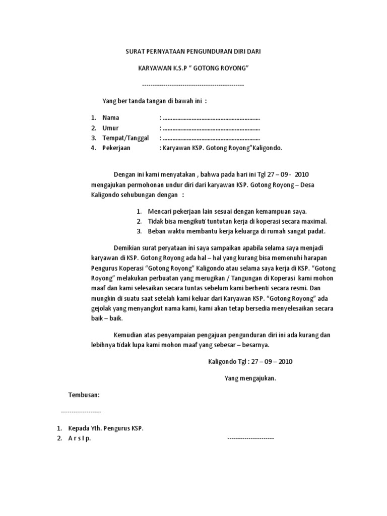 Contoh Surat Pengunduran Diri Dari Koperasi - Download Kumpulan Gambar