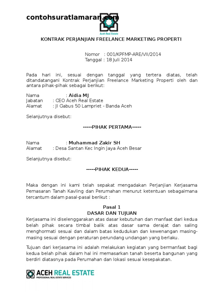 Contoh Surat Perjanjian Kerjasama Freelance Marketing - Surat 35