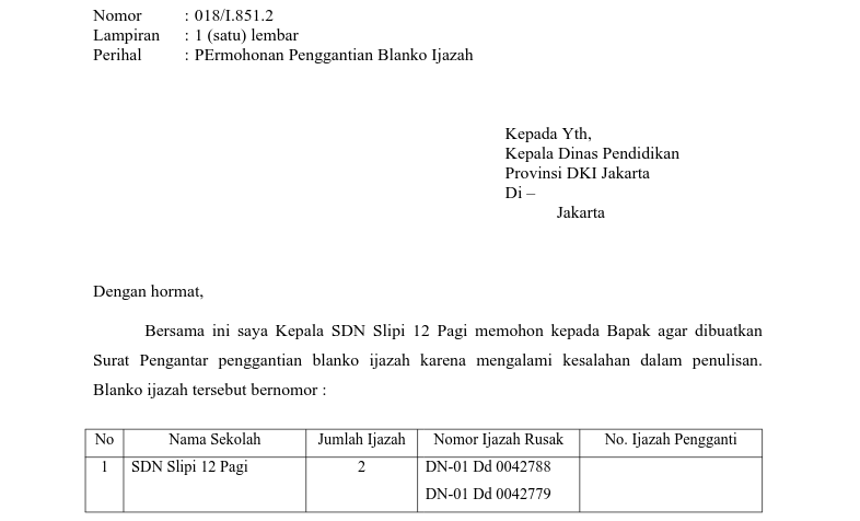 Contoh Surat Permohonan Pengganti Blangko Ijazah Baru Yang Hilang …