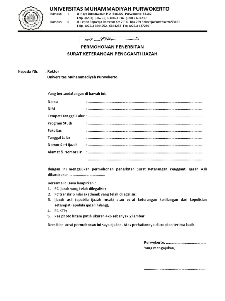 Contoh Surat Keterangan Ijazah Hilangrusak - Download Kumpulan Gambar
