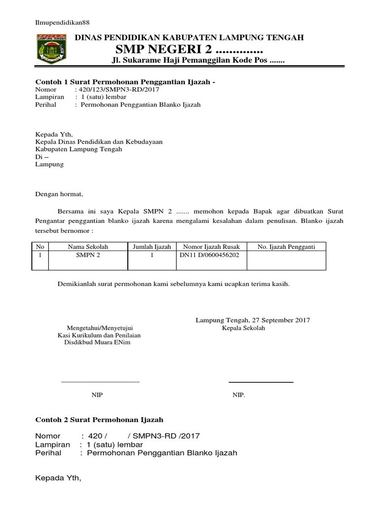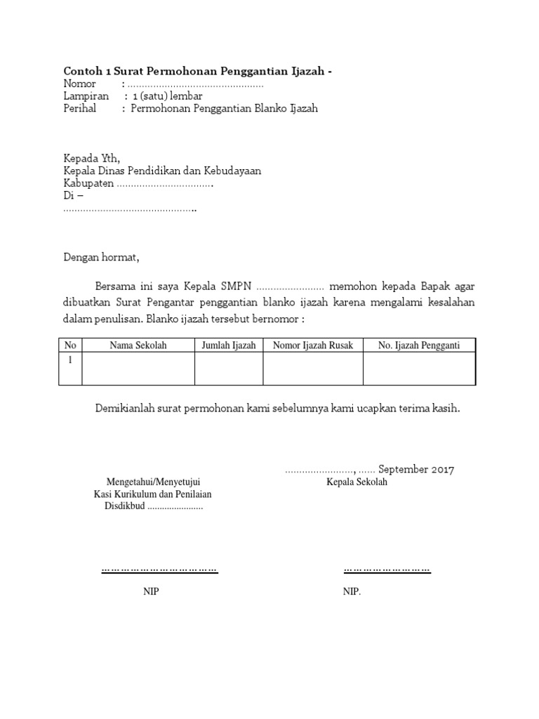 Contoh Format Surat Permohonan Pengganti Blangko Ijazah - Guru …