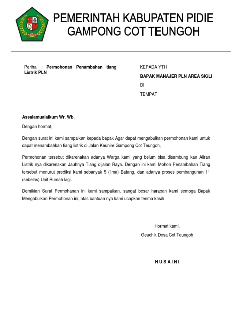 Contoh Proposal Minta Bantuan Penambahan Tiang Listrik – Pigura