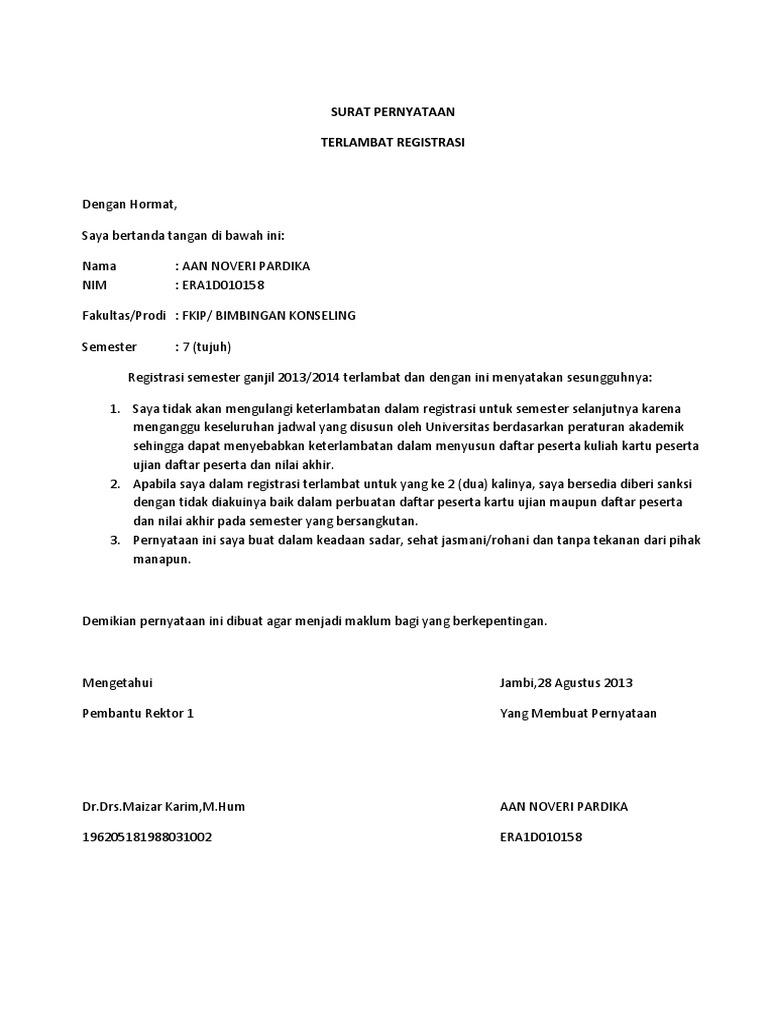Contoh Surat Pernyataan Maaf Keterlambatan KRS Mahasiswa Kuliah …