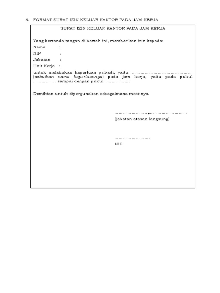 Contoh Surat Izin Keluar Kantor Pada Jam Kerja – Contoh.Lif.co.id