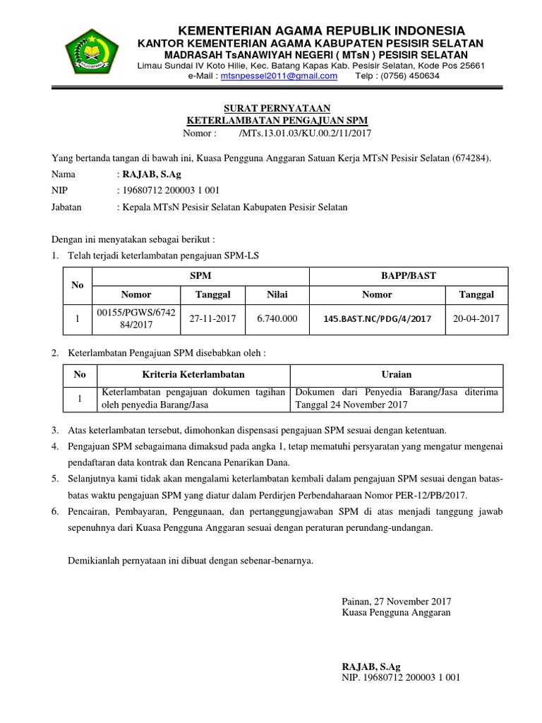 Surat Pernyataan Keterlambatan Pengajuan Spm - Djpb