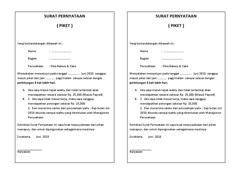 Surat Pernyataan Piket New