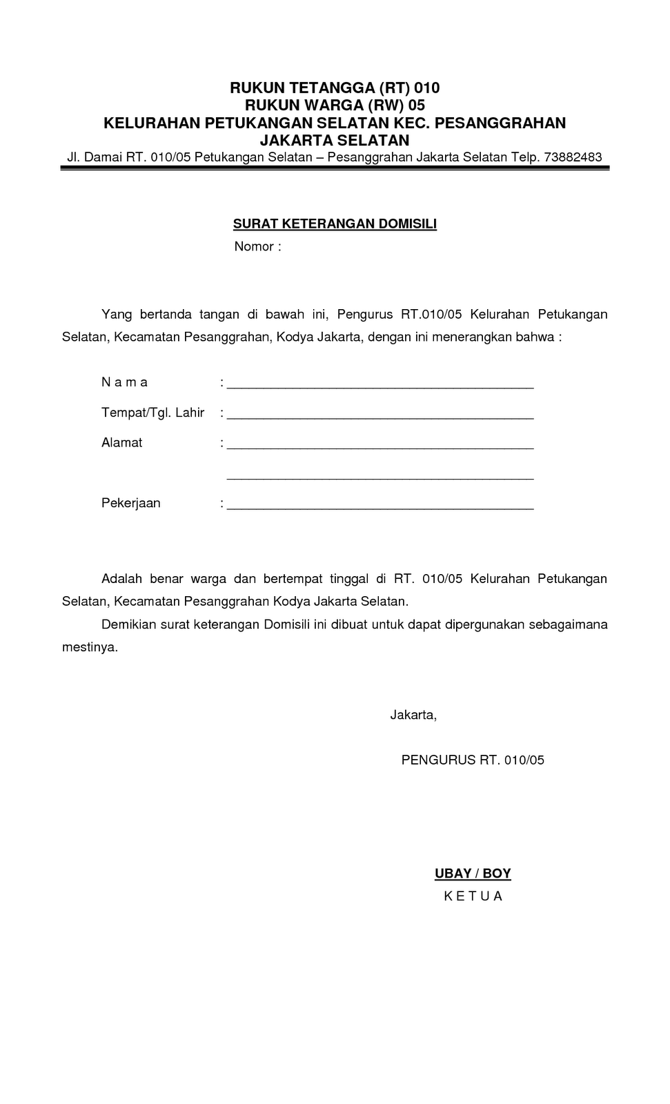 TKIT-TPQ BAITUL ‘AINI: Contoh Surat Pernyataan Tetangga Untuk …