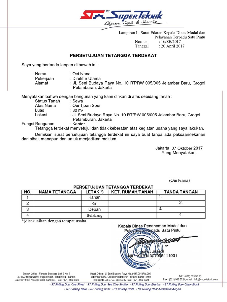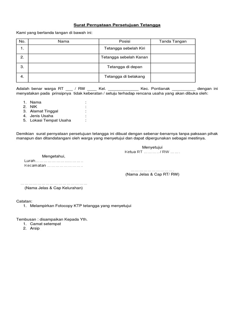 Contoh Surat Persetujuan Tetangga Untuk Ho - Download Kumpulan Gambar