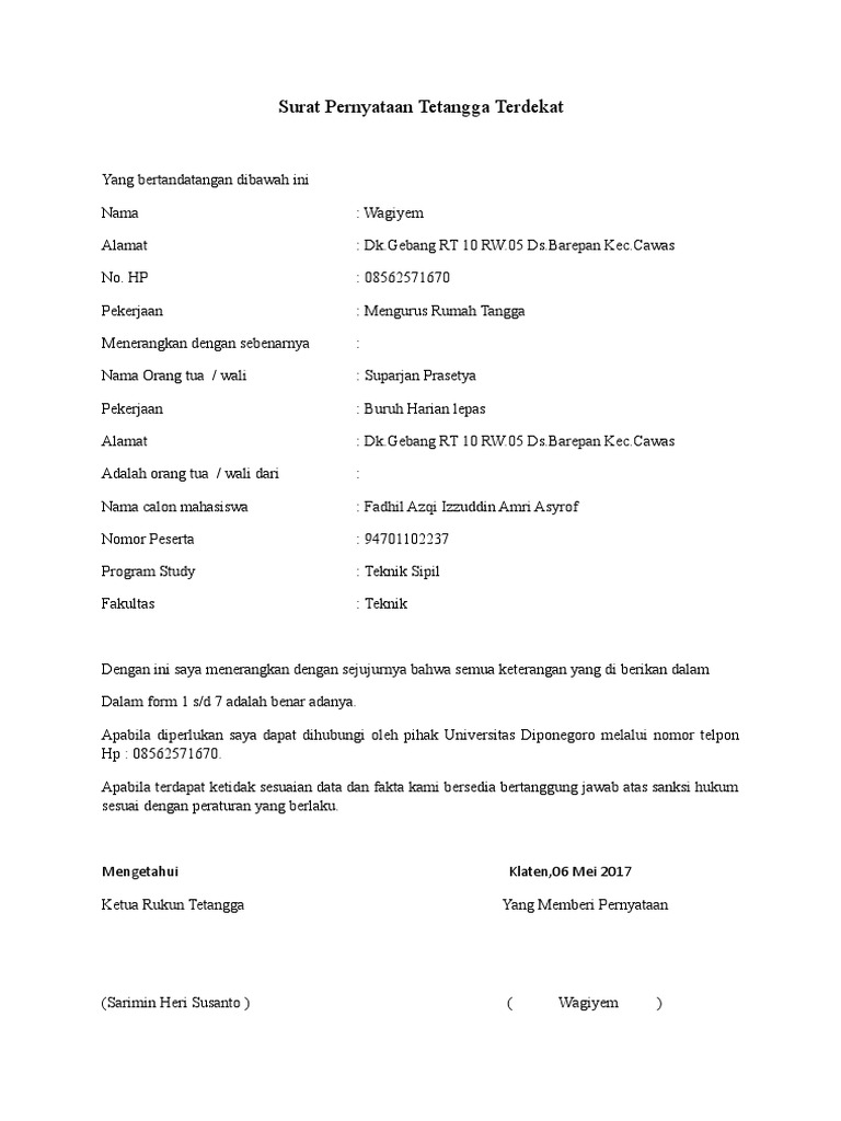 Contoh Surat Pernyataan Tidak Keberatan Dari Tetangga - Bagi …