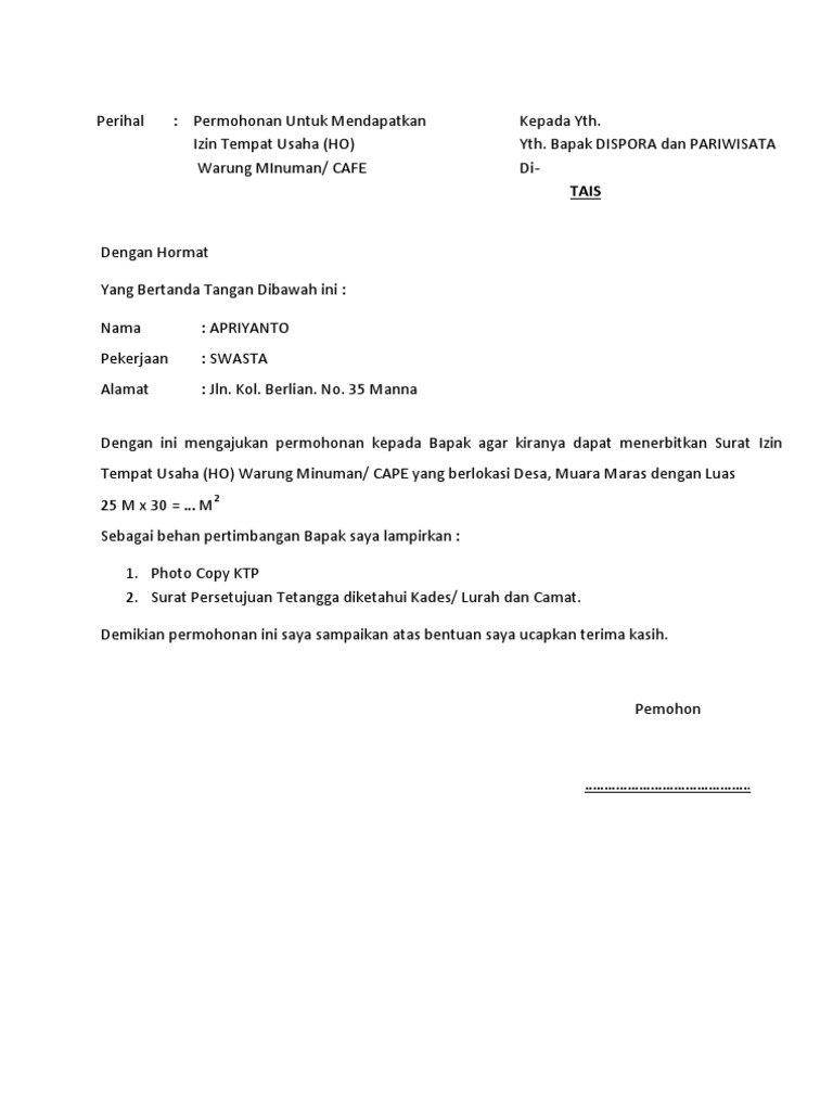 Contoh Surat Izin Usaha Ke Tetangga