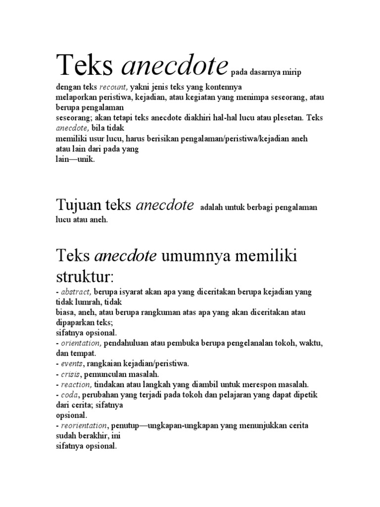 Anecdote Text : Pengertian, Tujuan, Ciri Dan Generic Structure …