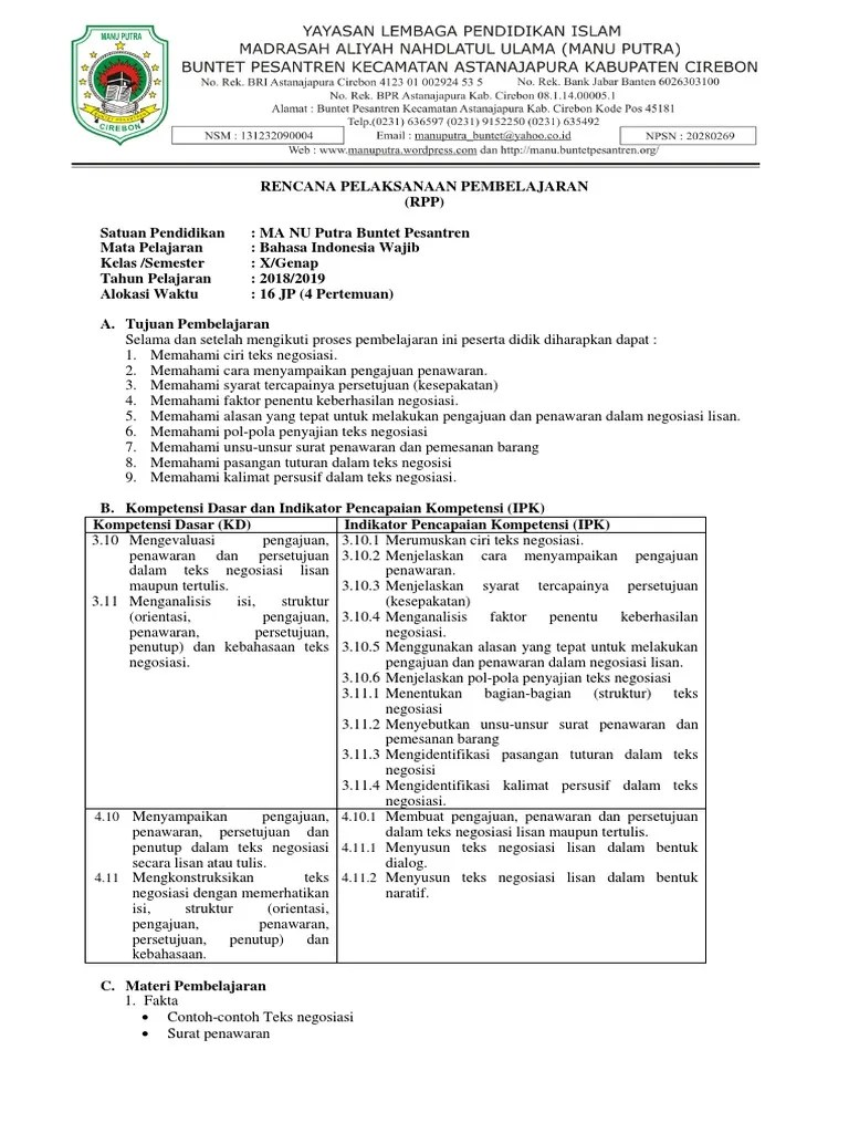 RPP KD.3.10 & 4.10 TEKS NEGOSIASI