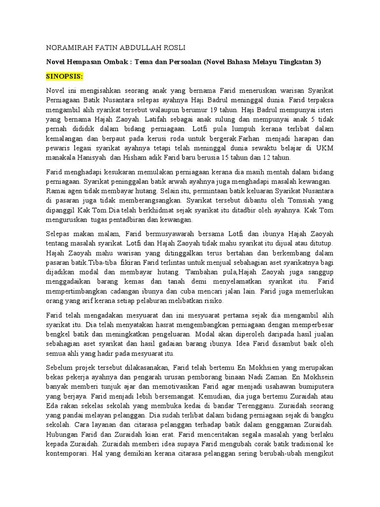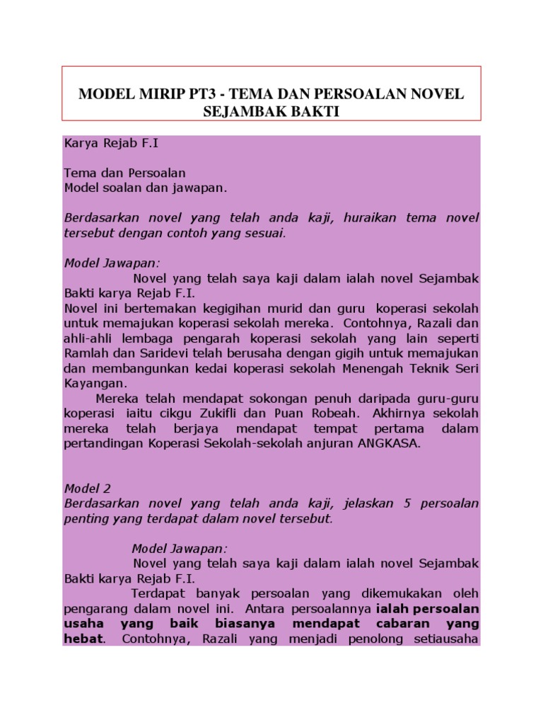 Tema Novel Renyah Tingkatan 4 tahun2010 - [DOC Document]