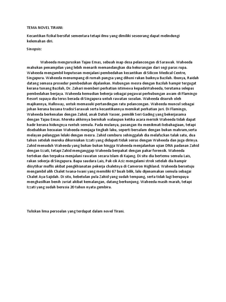 Contoh Jawapan Novel Tirani Latar Tempat Contoh Moo - Cute766