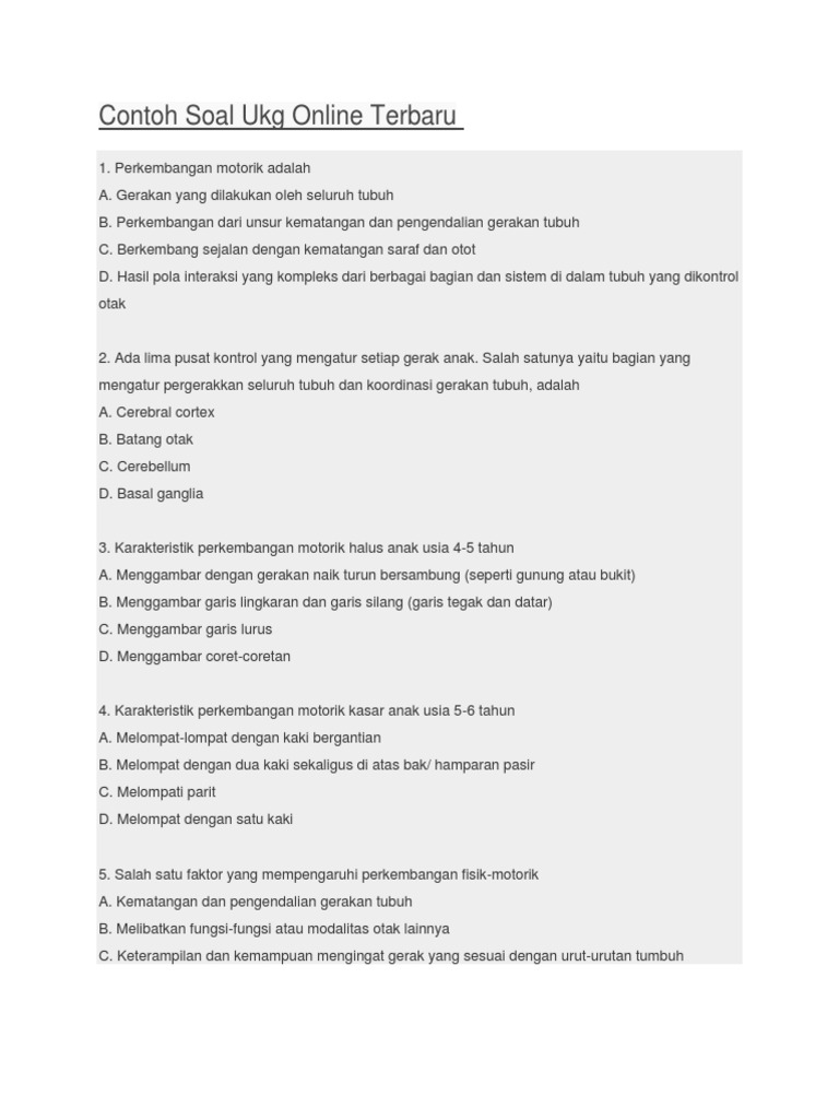 Contoh Soal UKG Online dari Jenjang PAUD sampai SMK..LENGKAP | SDN …