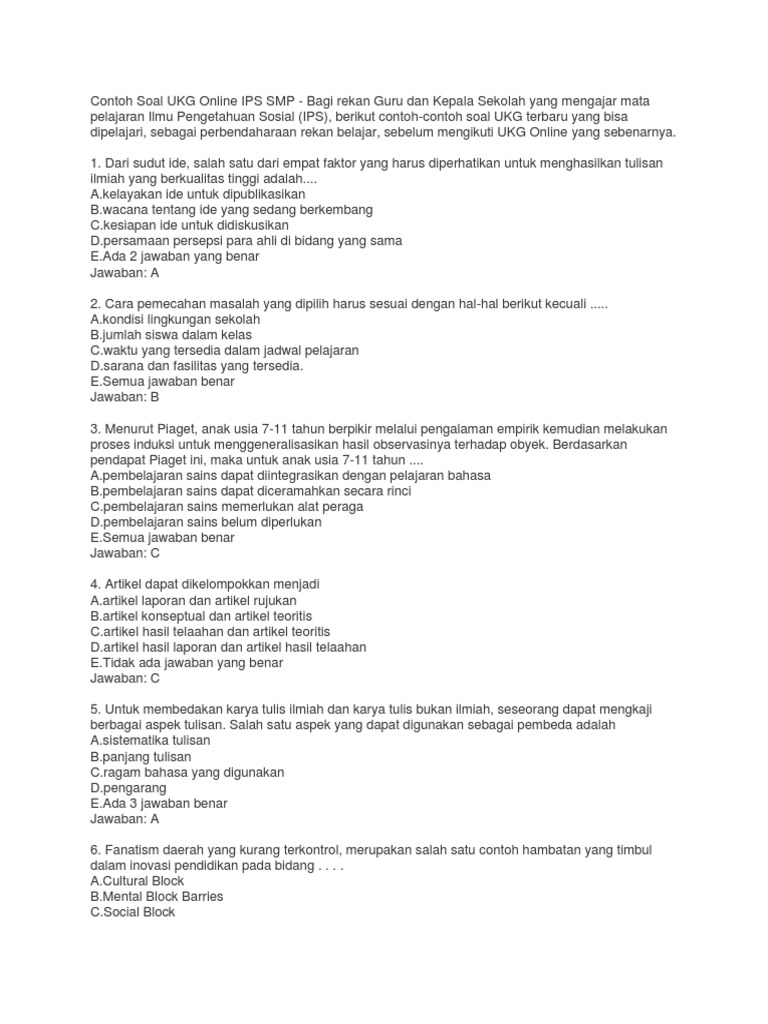 Contoh Soal UKG Online IPS SMP