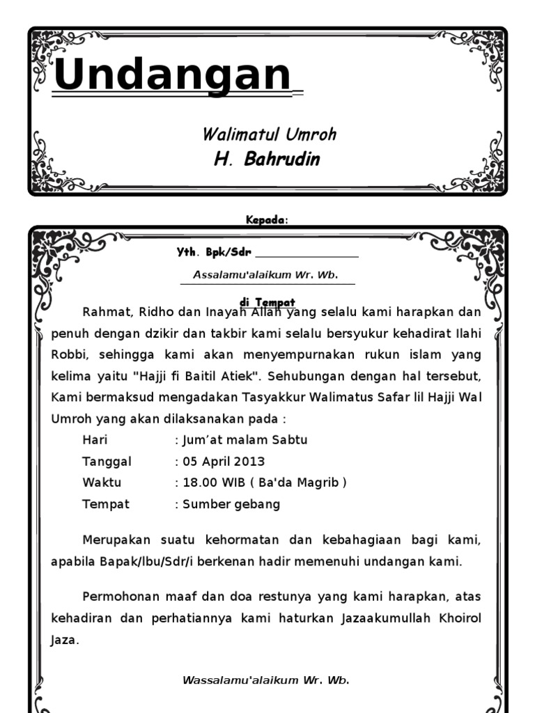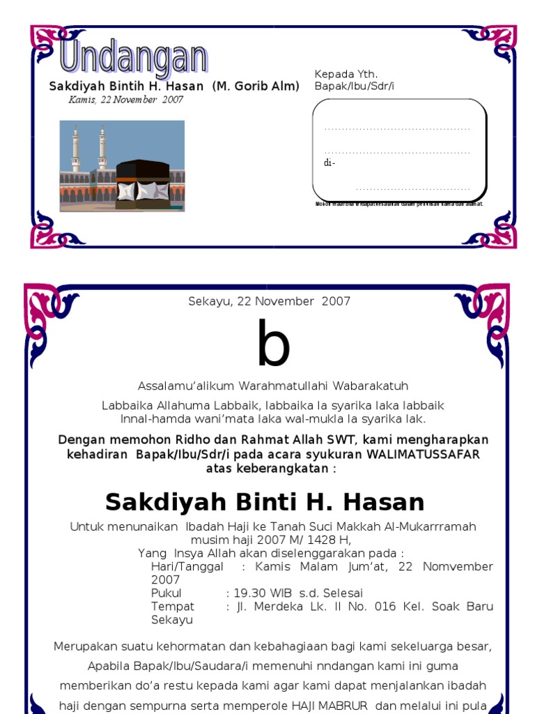 Undangan Walimatussafar Haji Doc - Nusagates