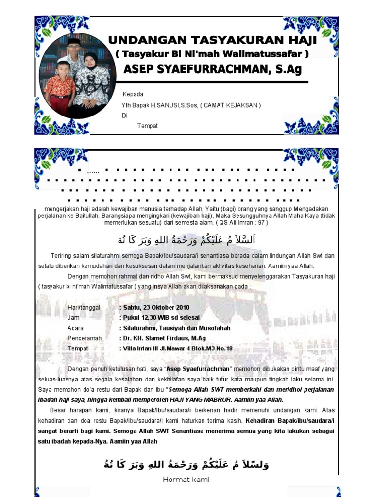 Contoh Undangan Walimatussafar Haji Doc - Nusagates