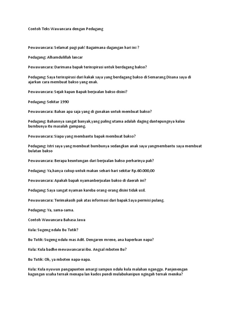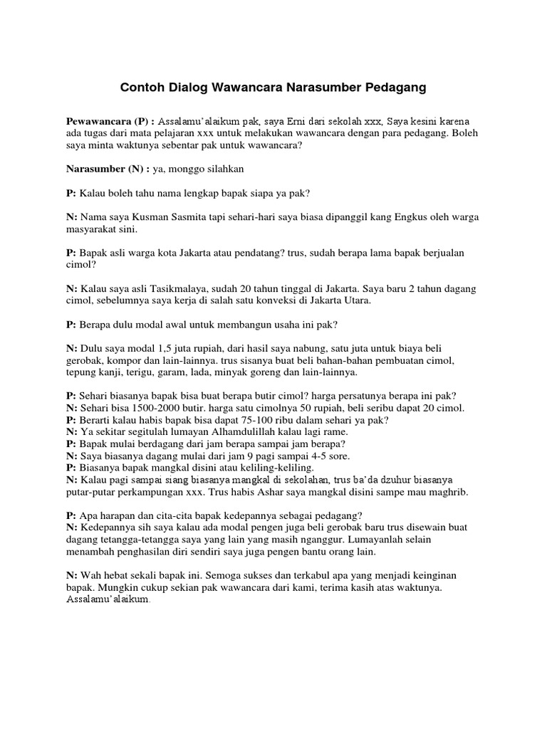 DOC) Contoh Teks Wawancara dengan Pedagang | imma makassar …
