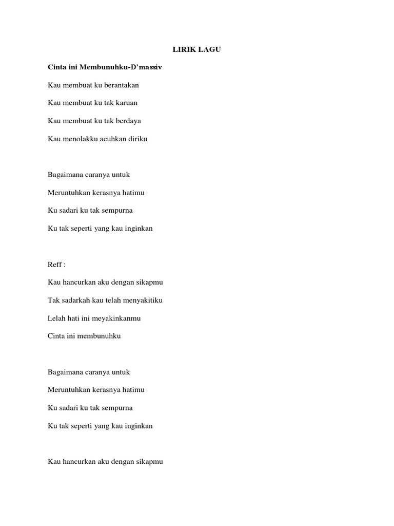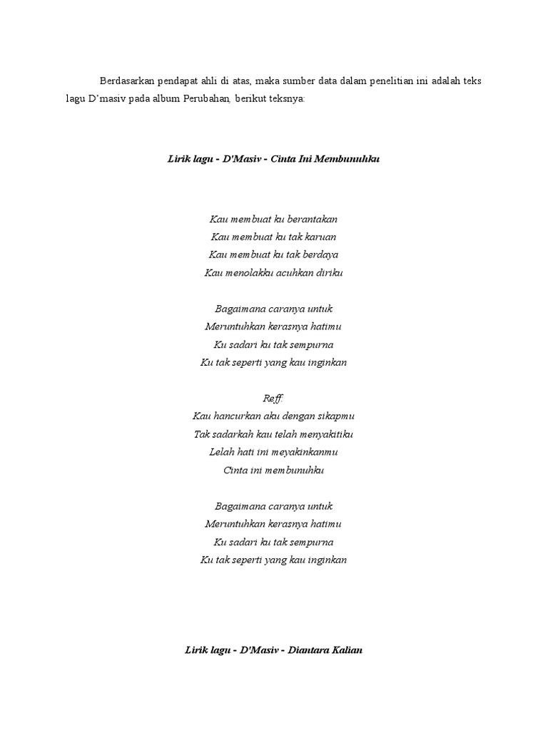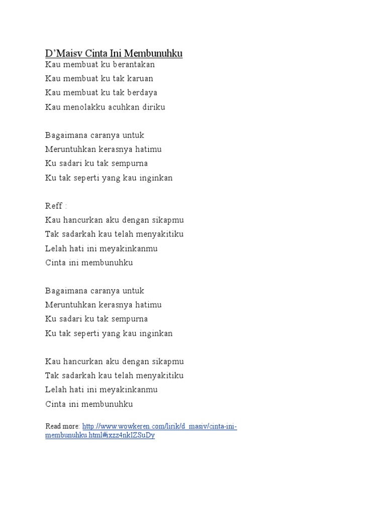 Lirik D’Masiv – Cinta Ini Membunuhku | Kumpulan Lirik Lagu Terbaru …