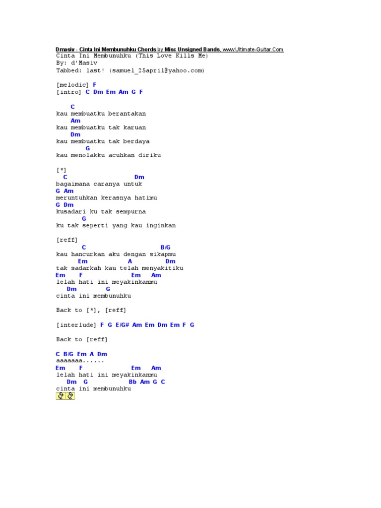 Chord dan lirik lagu d’masiv cinta ini membunuhku by Chord Zila …