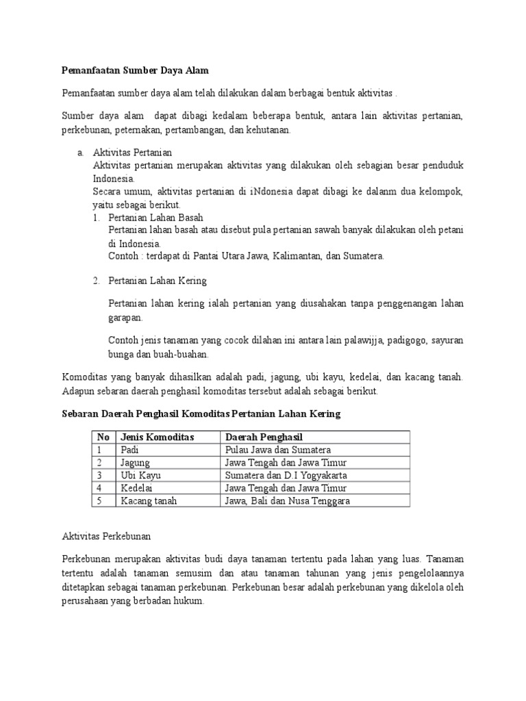 pemanfaatan dan daerah penghasil sumber daya alam indonesia …