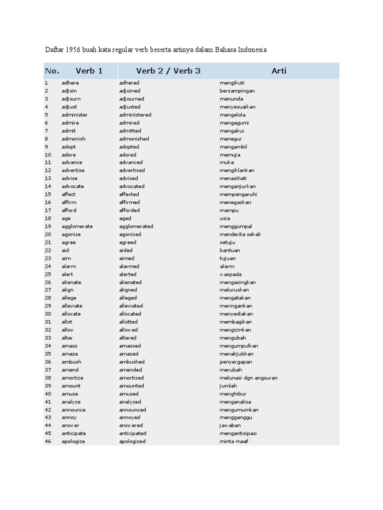 Verb 1 2 3 Regular And Irregular Beserta Artinya Pdf – IlmuSosial.id